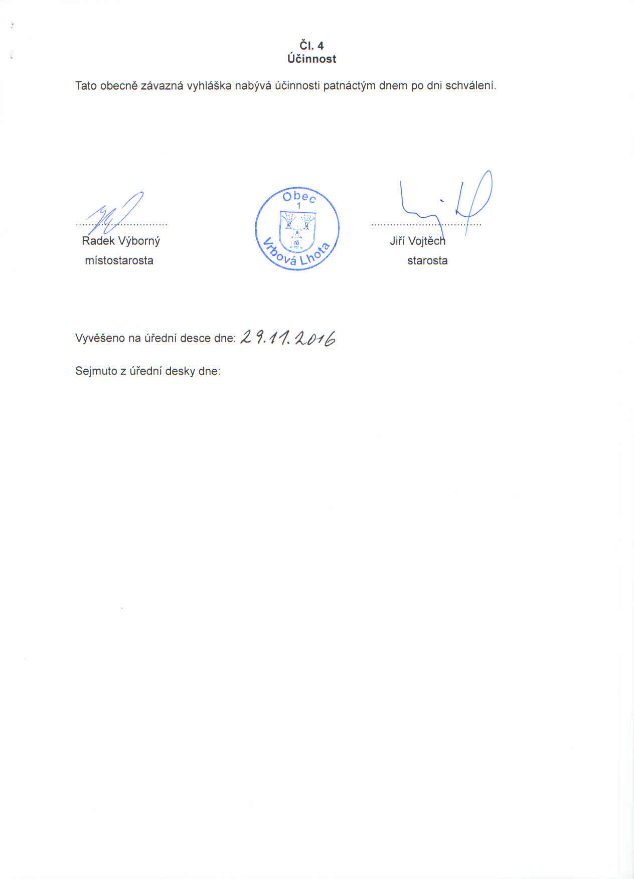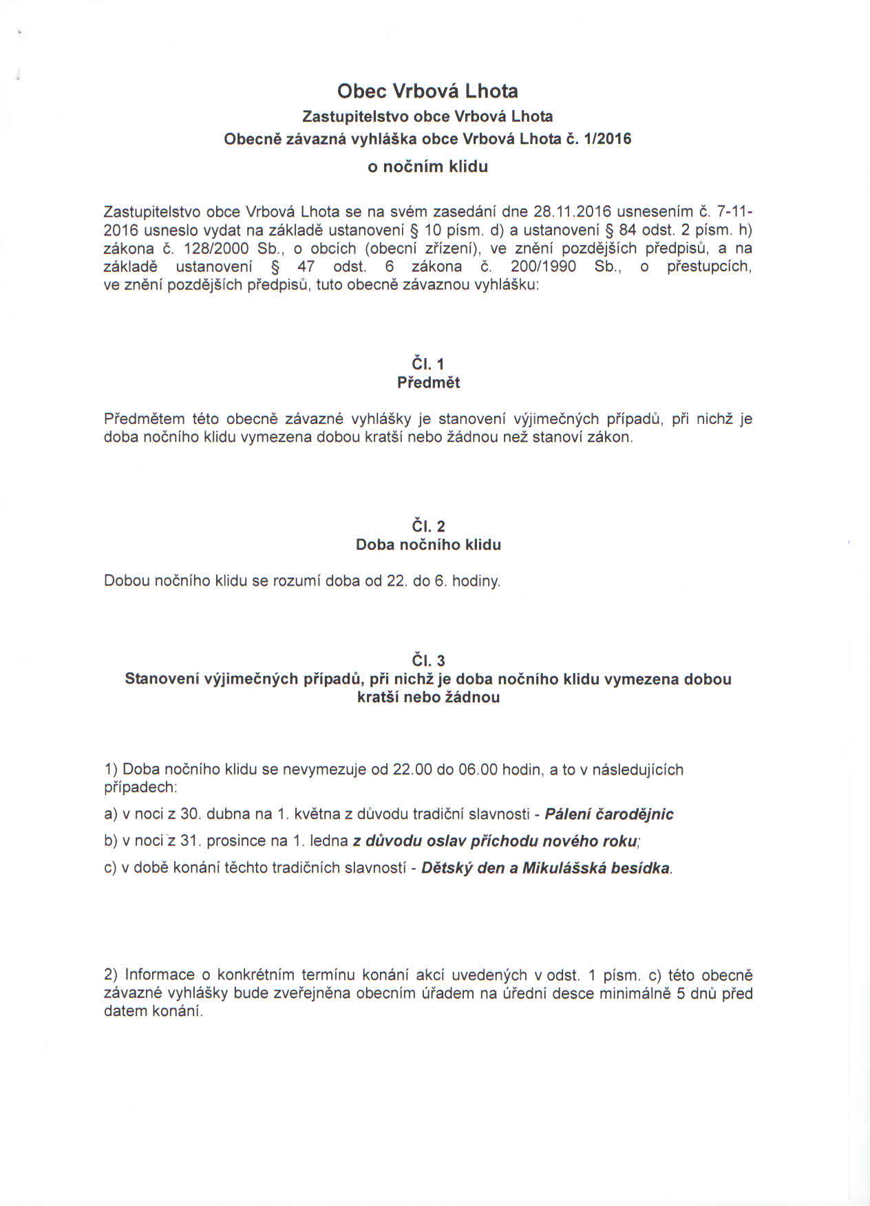 Obecně závazná vyhláška obce Vrbová Lhota č. 1/2016 o nočním klidu